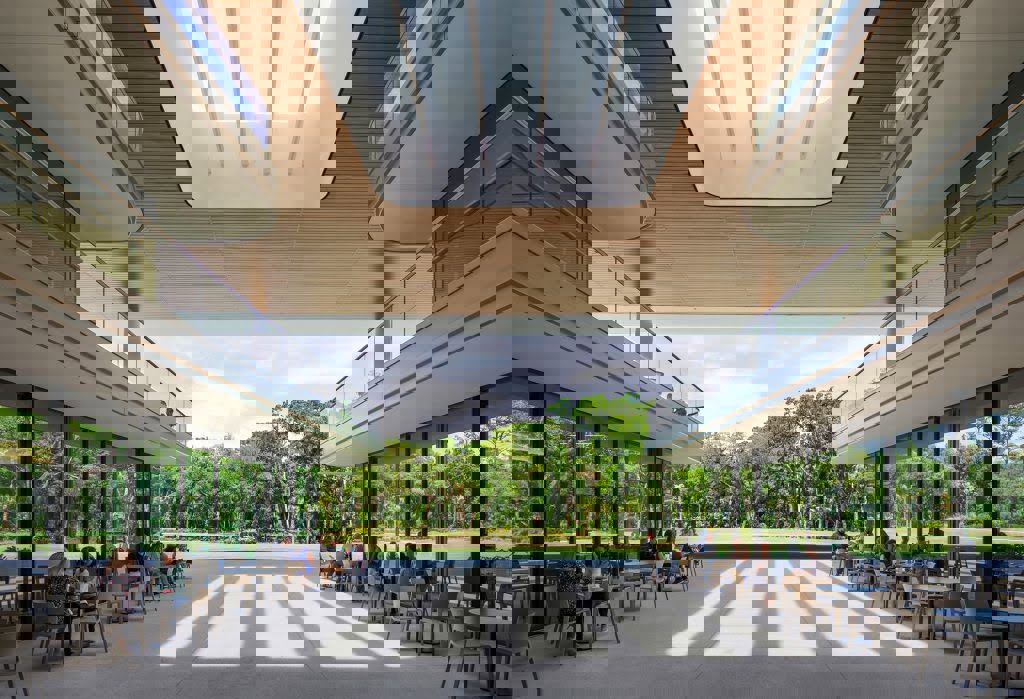 The new Global Home of the PGA TOUR in Ponte Vedra Beach, Florida opened in 2021 and was designed by Foster + Partners. Arch Daily explains that the the goal behind this new project is, “Focussing on health and wellbeing, the design blurs the boundaries between the lush landscape and the interior spaces with shaded outdoor terraces and generous amenities that embrace new ways of working and collaboration.”